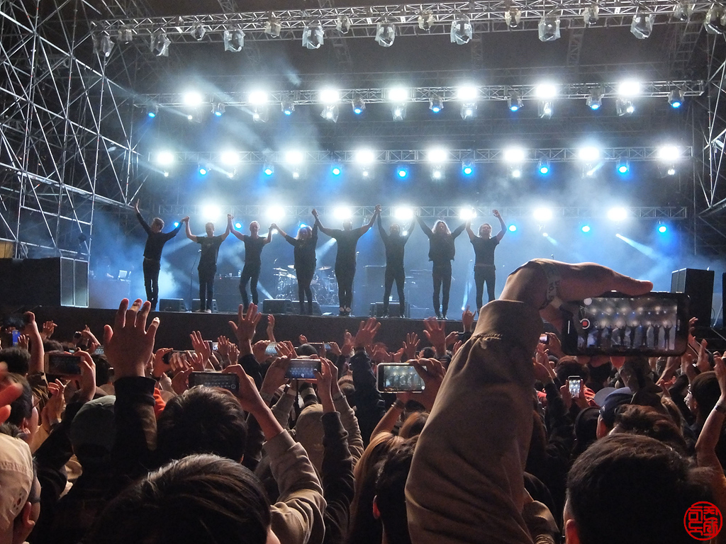 밴드 멤버들이 모두 무대 앞에 나와서 인사를 한다. 정규 순서가 끝났다.