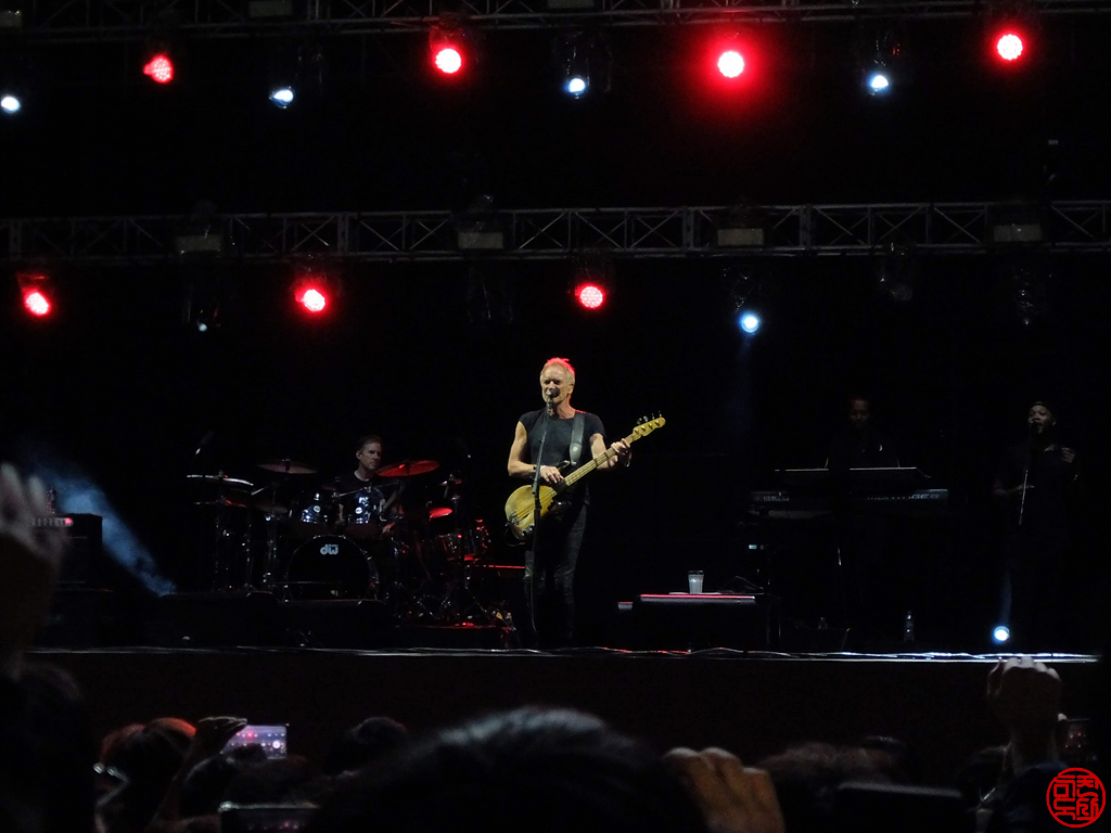 이번 투어 셋리스트대로 첫 곡은 Message in a Bottle이었다. 그런데, 목소리가!!! 우리가 아는 딱 그 스팅 목소리였다. 아니 유튜브의 그 많은 아쉬움 가득한 올해 영상들은 다 뭐였던 거지? 아니, 내가 23년 전 그 날, 같은 장소에서 처음 들었던 그 느낌과 다르지 않았다. 첫 곡부터 박수치고 노래하고 화끈화끈하다! 노래 중간에 짧게 인사를 외쳤다. “Seoul, Korea, how are you?” 큰 소리로 환호! 곡 끝부분에 길게 끄는 부분이 있는데, 아직 쌩쌩하게 끌어낸다. 우워! 아, 미치겠네. 나뿐만 아니라, 주변에 미치겠다는 소리가 여기저기서 나온다.