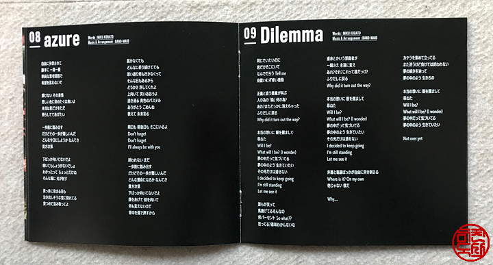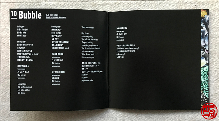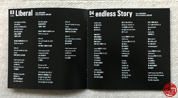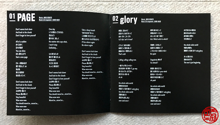 그리고, 초회 한정으로 수록곡들과 밴드의 주요 키워드로 되어 있는 투명 스티커가 두 장 들어 있다.