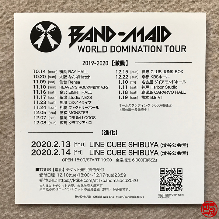 | BAND-MAID의 라이브 블루레이/DVD 발매 예정 (0) | 2020.02.18 |