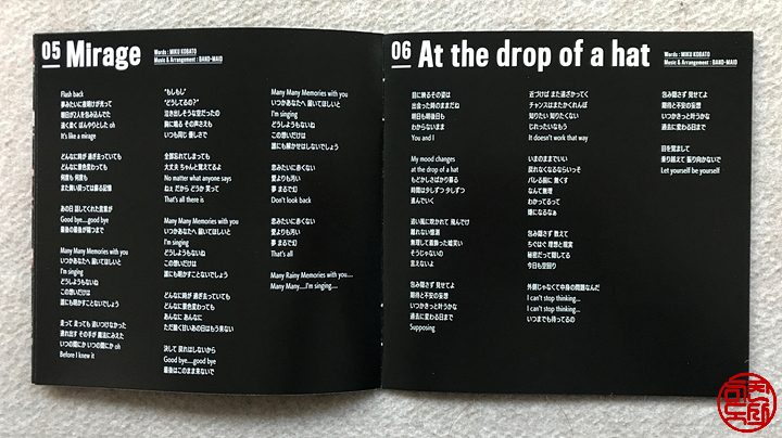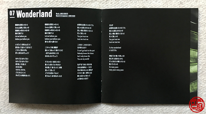 모든 곡이 밴드메이드 작곡 - 작곡의 중심은 아무래도 기타리스트 카나미! 작사는 모두 미쿠로 되어 있다. (한 곡 빼고)