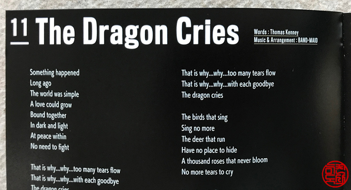 모든 곡의 작사가 미쿠인데, The Dragon Cries만 Thomas Kenney라 되어 있다. 누구지?
