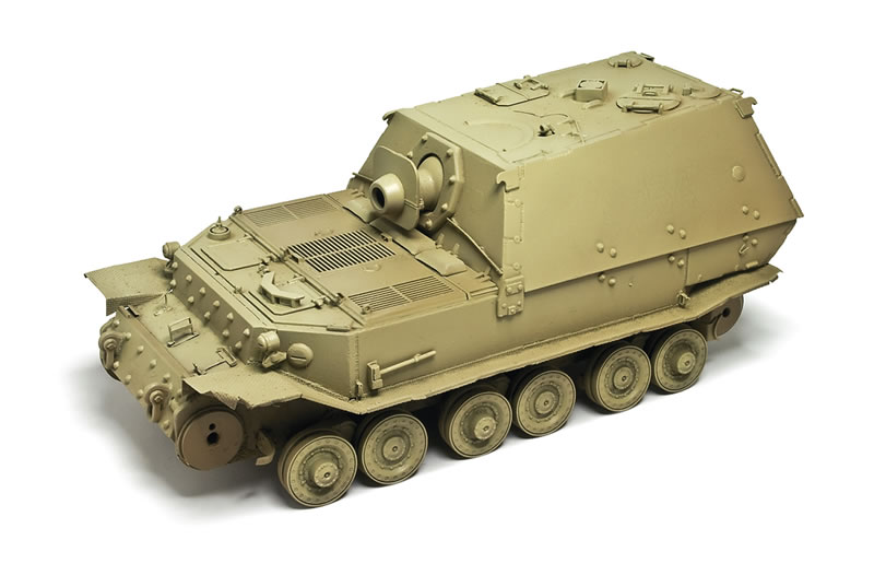 I will say up front, get ready for a lot of airbrushing. CM requires three main levels of color (light, medium, and dark) to achieve proper gradations between the values, which are broken into stages as you lighten each progressive step. Here I will use four stages of airbrush application to realize the final base coat, but first I must choose a source from which the lighter areas originate. I decide to keep it very simple and intend to have the light coming from the center upper frontal area of the vehicle, and will also work well with the downward slope of the top hull.