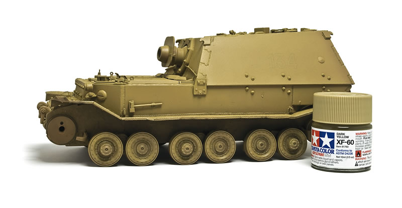 CM 도장이 계속됨에 따라 각 연속적인 레이어로 모형을 점차적으로 밝게 할 것인데, 이는 두번째 색 레이어는 기본 도장의 중간 레이어로써 순수 XF-60 (Dark Yellow)를 칠한다.