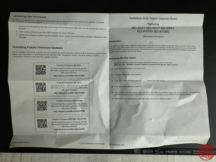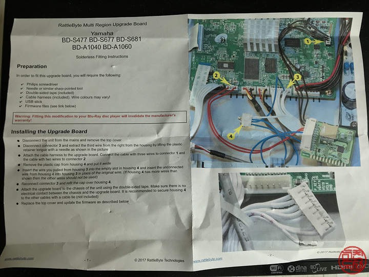 제 블루레이 플레이어인 야마하 BD-S681용 솔루션도 제공하는지 검색했더니, 오~ 있습니다. 게다가 BD-S681은 납땜도 필요없이 가능하다합니다. 바로 구매. 가겨은 배송비 포함 49유로. 물론 제일 저렴한 배송이라 꽤 오래 걸렸습니다만 왔습니다. 조금 전에 아침 식사하고 바로 작업했습니다.