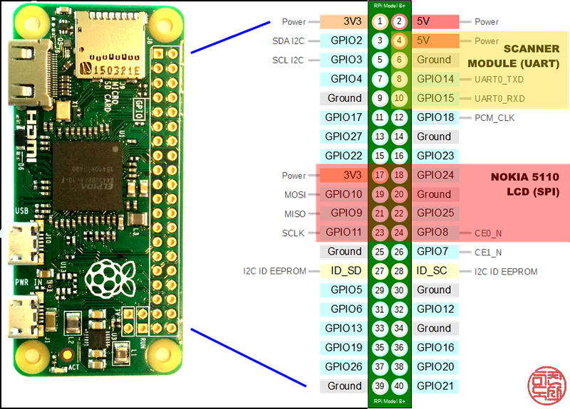 실제로 5110 LCD는 SPI라는 규격으로 통신을 해야 해서, 라즈베리파이의 SPI 포트에 연결해야 합니다.