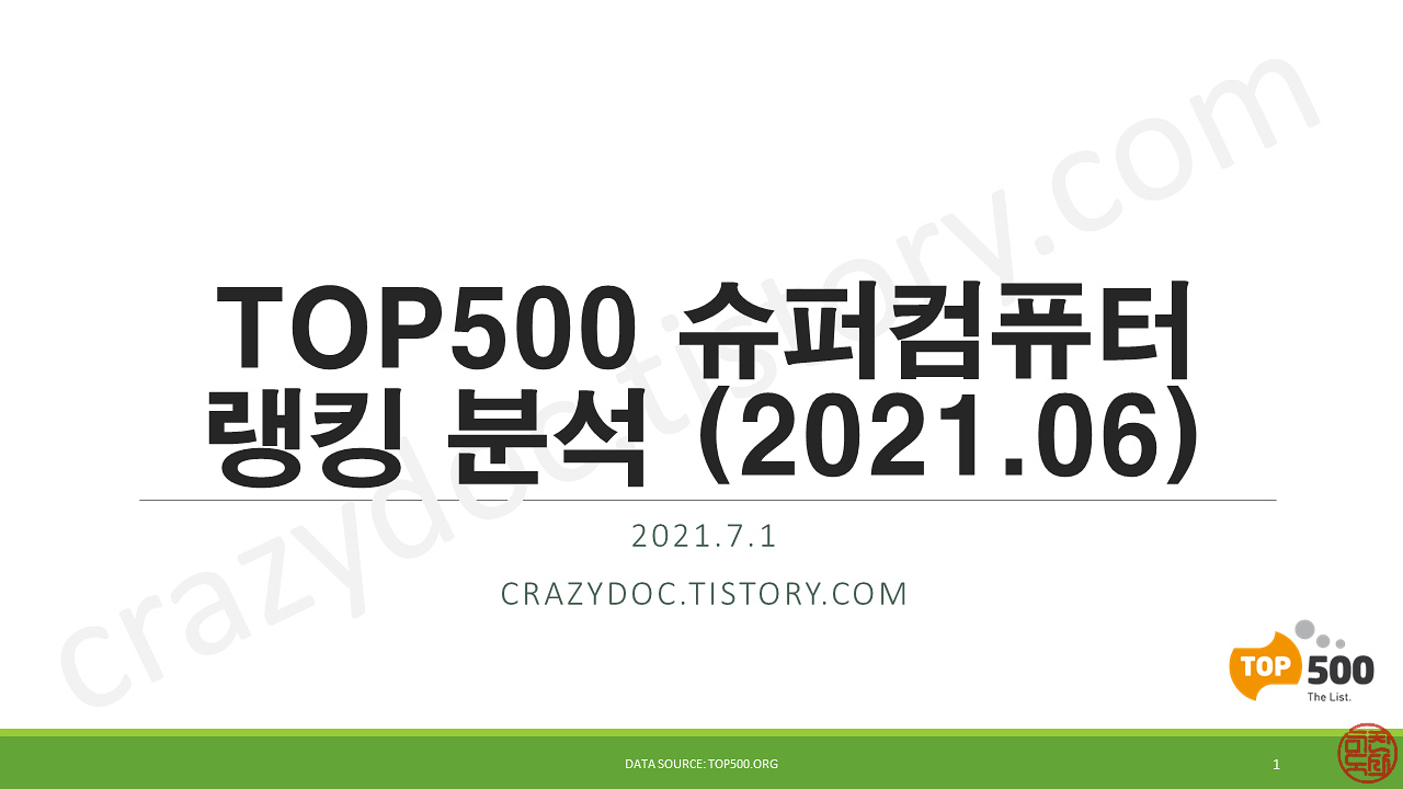 매년 6월과 11월에 발표되는 슈퍼컴퓨터 랭킹인 TOP500 리스트가 이번에도 어김없이 이번 주 월요일인 6월 28일에 발표되었습니다. 지난 2020년 11월에 발표된 56회 순위는 제가 어쩌다가 글을 못 썼네요. 1년 만의 관련 포스팅입니다.