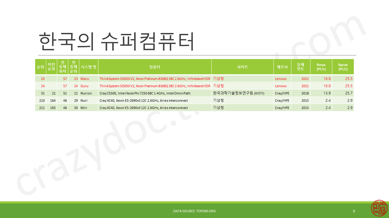 | 제 58회차 TOP500 슈퍼컴퓨터 랭킹 분석 (0) | 2021.11.18 |