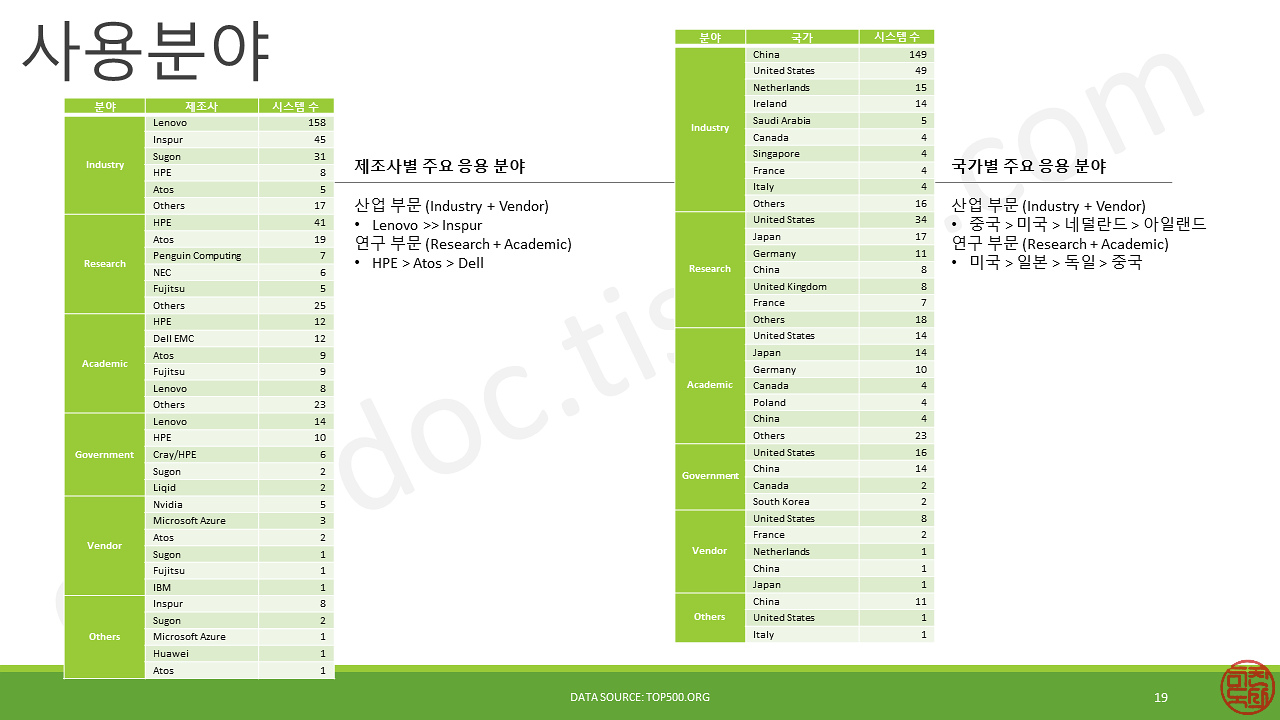 시스템 대수가 제일 많은 레노버는 산업 분야에서 많이 쓰이고 있고, 연구 부분은 HPE가 강세입니다. 이 성향은 국내에서도 비슷한 것 같지요?