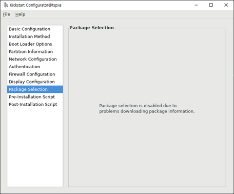 - Package Selection: 설치할 패키지를 설정할 수 있는 부분인데, GUI 툴에서는 안 된다. 그냥 수동으로 지정할 수 있다.