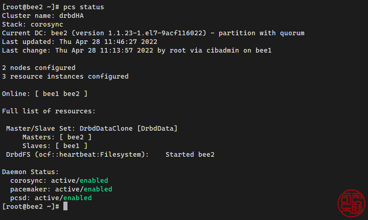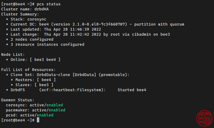 그런데, 이게 el8에서는 좀 달랐다. 정확하게 말하면 drbd파티션의 동기화가 el7과 el8에서 좀 다르게 동작했다는 것이 맞을 것 같다.