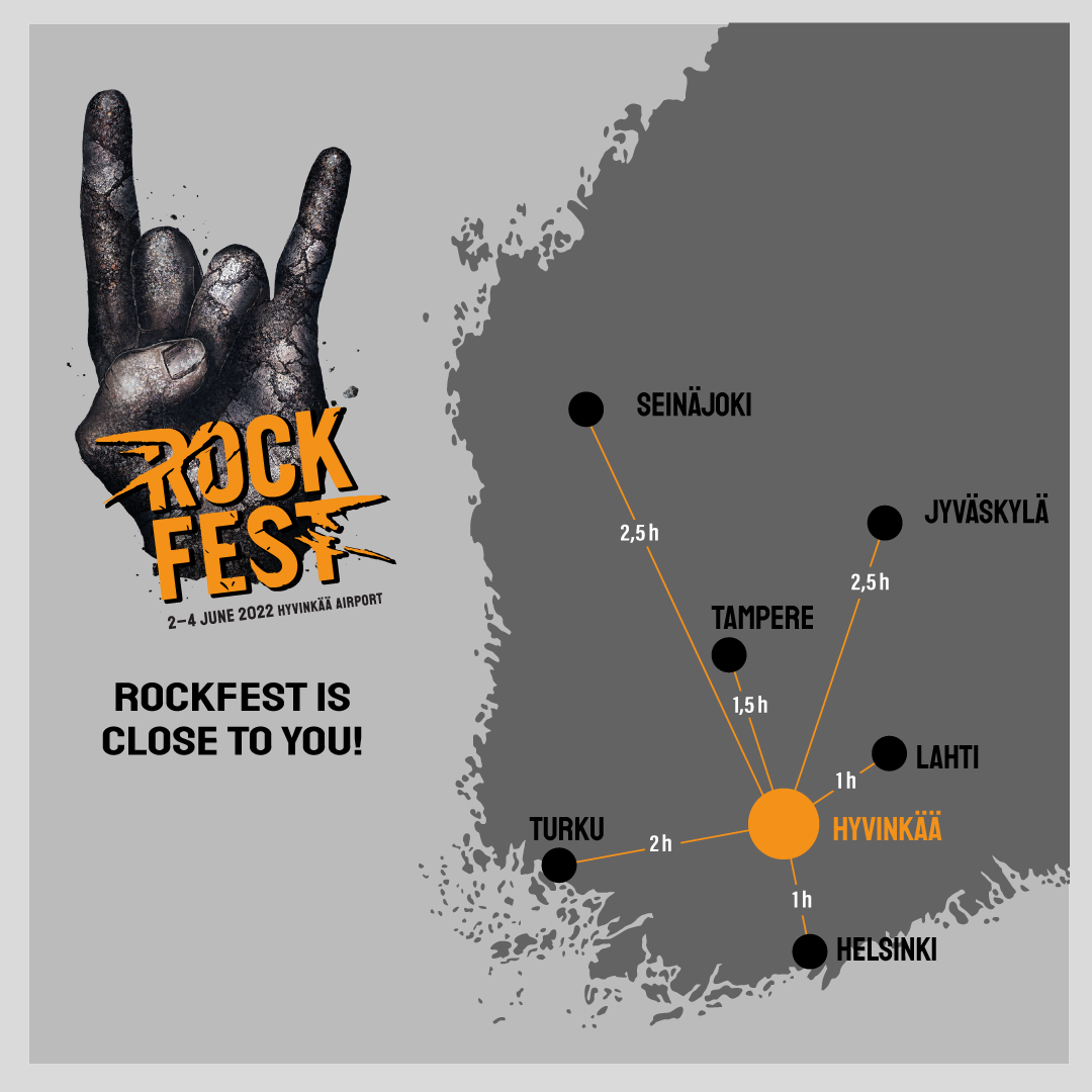 그러던 중에 큰 딸이 2년 전에 핀란드로 대학을 가게 되었고, 코로나가 조금 관리 대상 수준으로 약해진 이번 초여름에 나머지 가족들이 핀란드에 가보는 일정을 세웠습니다. 늘 해외 출장을 가거나 하면 그 지역 주변에 재미있는 공연이 있는지 검색을 해보는 편인데, 메탈의 나라 핀란드이기에 기대하고 검색을 해봤죠. 이번 기간에 락페가 딱 걸렸습니다! 이름도 너무나 뻔하게 ROCKFEST!! 위치도 제가 머무를 헬싱키라 되어 있네요.