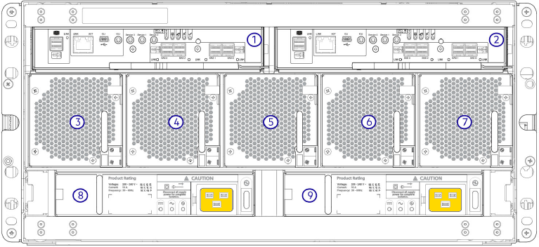 디스크가 많이 있는 스토리지가 GPU가 많이 들어가는 GPU 서버의 경우 다른 커넥터가 쓰입니다. 아래는 Dell PowerVault ME4084 스토리지의 뒷면입니다.