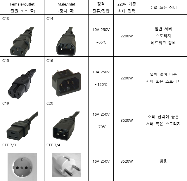 서버나 스토리지 장비에 전원 코드가 몇 가지 모양이 있는데, 나름 그 의미가 있는데 잘 모르고 쓰는 경우가 많은 것 같습니다. 그래서, 정리 한 번 해보겠습니다.