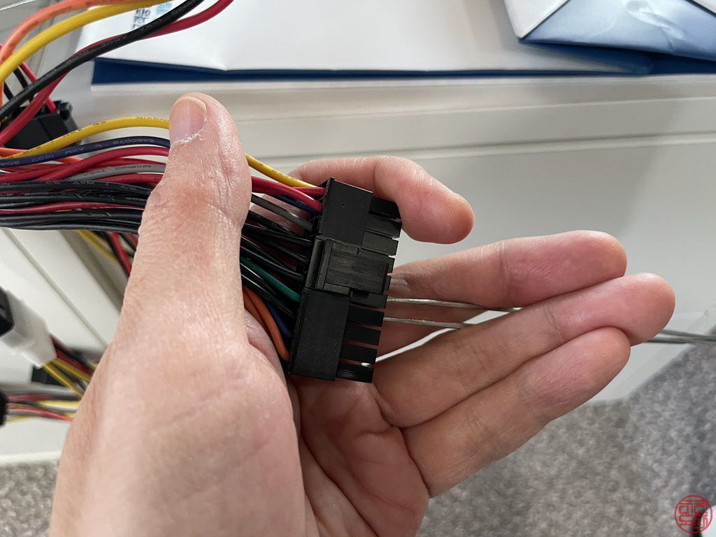 이 파워서플라이를 켜는 방법은 녹색선이 연결된 핀이랑 접지(Ground,GND)핀을 연결하면 됩니다