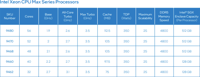 Xeon Max 제품은 현재 5종이 공개되었습니다.