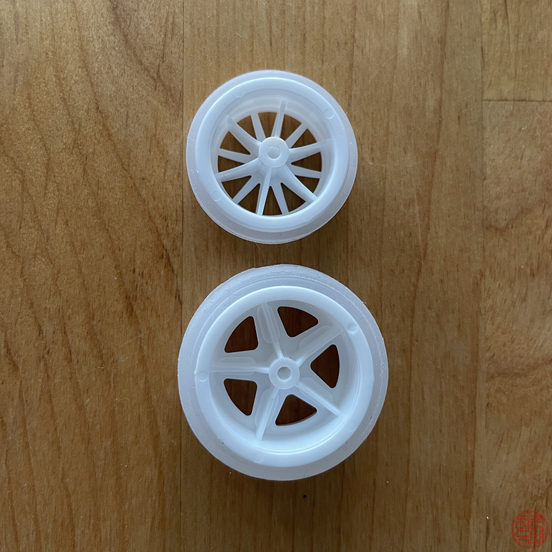 바퀴가 키트에 든 것보다 크다. 더 작은 휠이 있지만, 그건 또 키트 기본보다 너무 작다.