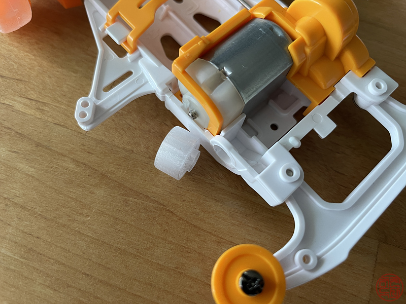 그래서 뒷바퀴도 좀 더 바깥으로 빼기 위해 작은 부품을 하나 3D 프린터로 찍었다.