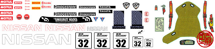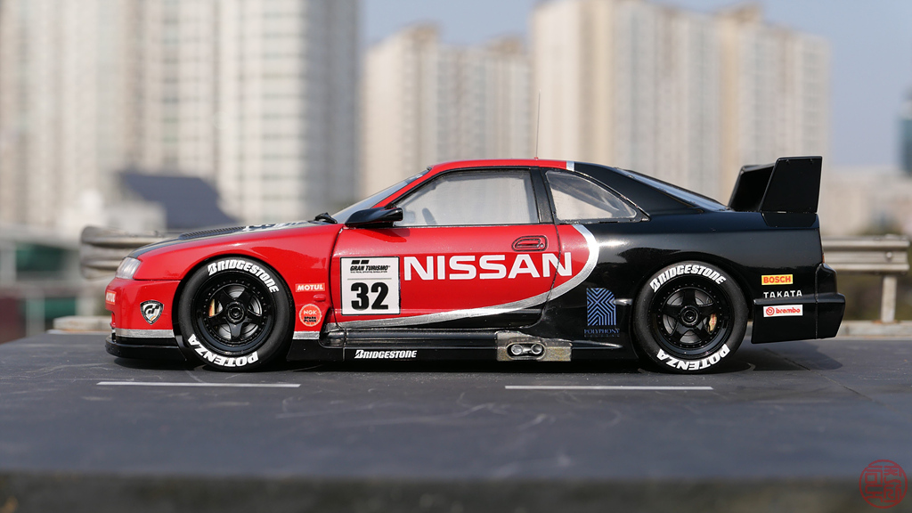 NISSAN과 Bridgestone, Potenza을 제외하고는 모두 자작 데칼입니다. 써니스코파 투명 바탕과 흰색 바탕 데칼 용지를 적절히 섞어서 출력해서 썼습니다. NISSAN 등 데칼은 이베이 뒤져서 1/24 차량용 데칼 제작 판매하는 걸 구입했습니다.