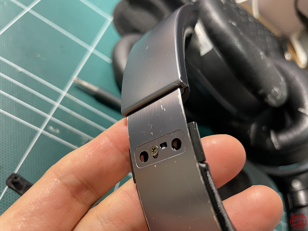 이 나사 2개를 좌우 각각 제거하면 거기에 붙어있던 Headphone, WH-1000XM2라고 쓰여 있는 작은 로고 플레이트가 분리된다.