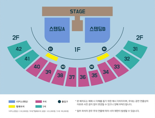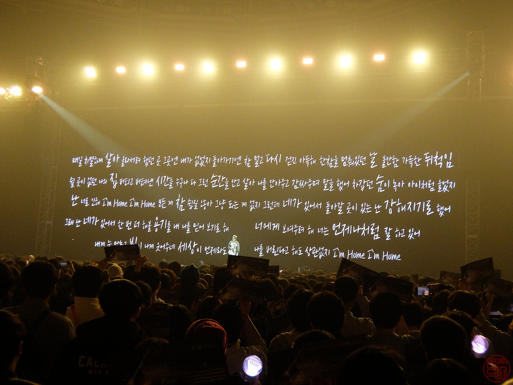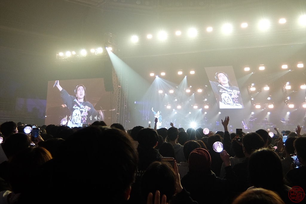 - 처음 두 곡은 살짝 조용한 곡으로 시작했다. 두 곡 끝나고 인사하면서 멘트를 했는데, 2층 지정석에 있는 이들을 경로석 취급을 했다. 스탠딩 석에 50 먹은 아저씨도 있는데.