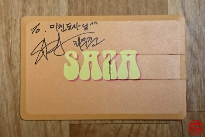 우리나라 락 기타리스트 중에 SAZA라는 닉네임을 쓰는 최우준이란 이가 있다. 2012년에 우리나라 기타리스트 12명이 모여서 "12G神"이란 이름으로 합동 공연을 한 적이 있는데, 그 때 이 사람을 처음 봤다. 내게는 이름도 처음 듣는 이였는데, 굉장히 임팩트 있는 연주에 놀랐던 기억이 있다. 이후, 페이스북이나 유튜브를 통해 이 사람의 활동을 팔로우하는 중, 이번에 그의 세번째 앨범이 나왔다 한다. 그러면서, USB로도 패키지를 소량 만들었다 해서 바로 구입! 그 USB 패키지를 한 번 훑어본다. 그의 로고, 신보 표지의 스티커가 하나씩 같이 왔다. 주문할 때 사인 받을 이름을 넣을 수 있었는데, 내 닉네임으로 신청. 한 면은 그의 로고... 다른 한 면은 앨범 표지. 작년에 정규 앨범을 USB로만 ..