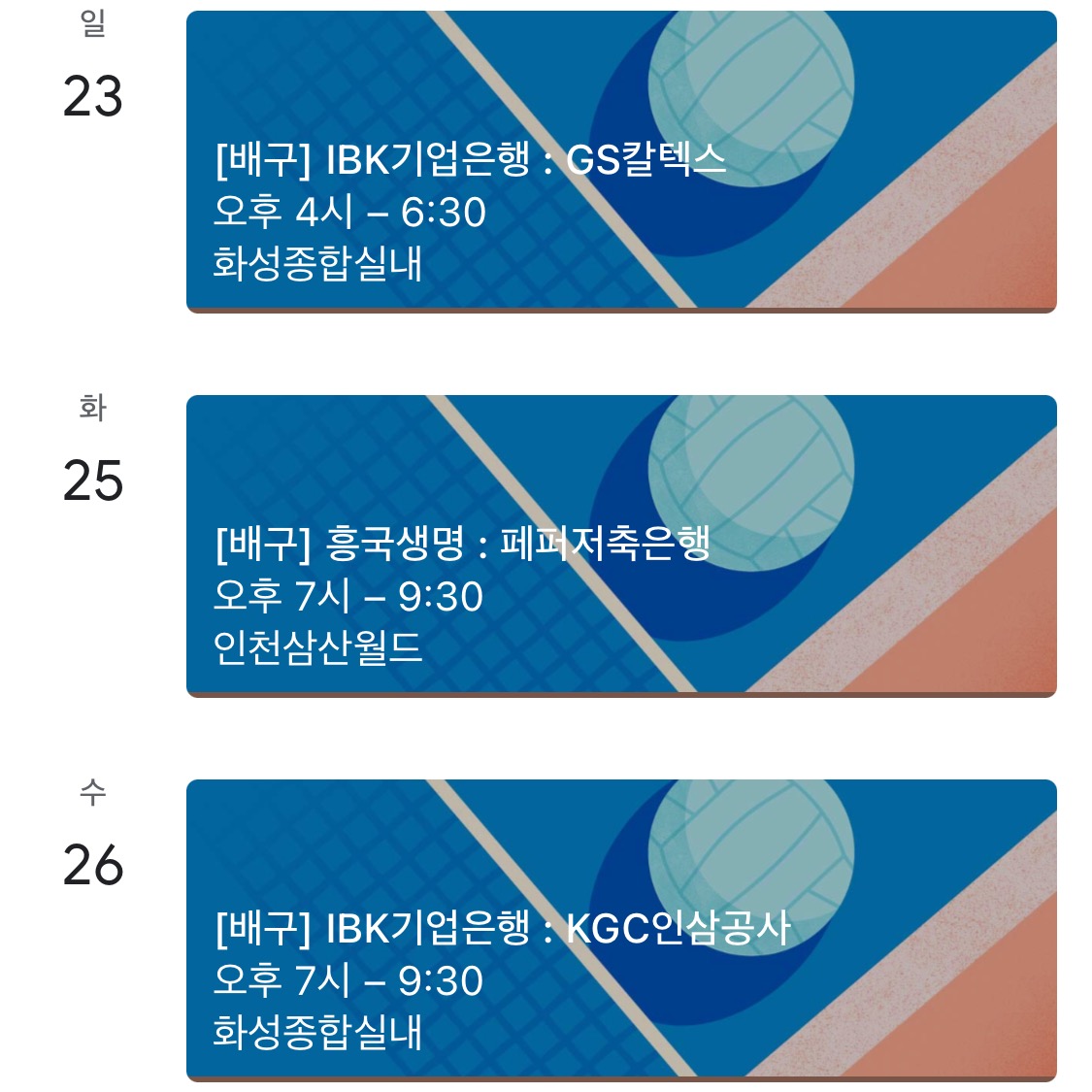 22-23 시즌 여자 배구 일정이 KOVO 홈페이지에 나와서 그 정보를 긁어서 약간 손봐서 구글 캘린더에 넣었습니다. 일정은 다음 링크에 나온 표를 참고하였습니다. https://www.kovo.co.kr/game/v-league/11110_schedule_list.asp?season=019&yymm=2022-10&s_part=2&r_round= ::KOVO 한국배구연맹:: . www.kovo.co.kr 방법은 다음과 같습니다. 모두 구글 캘린더의 설정에서 작업합니다. 1. 일정을 집어 넣을 캘린더 준비. 기본에 넣어도 되고, 별도 캘린더를 추가해도 됩니다. 저는 KOVO 여자 배구 2022-23이란 캘린더를 새로 만들었습니다. 2. "가져오기/내보내기"에서 추가할 구글 캘린더를 선택하고 "컴퓨터에서 파..